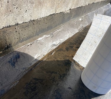 Traitement des relevés et retombées de dalle avant pose du revêtement final
