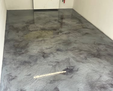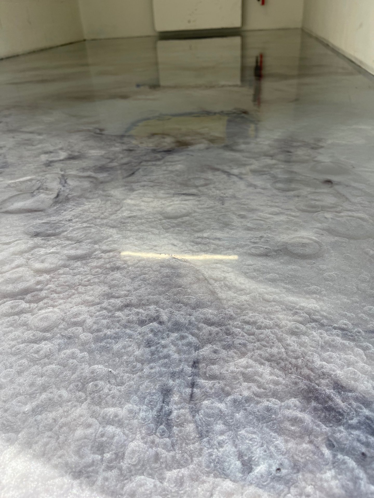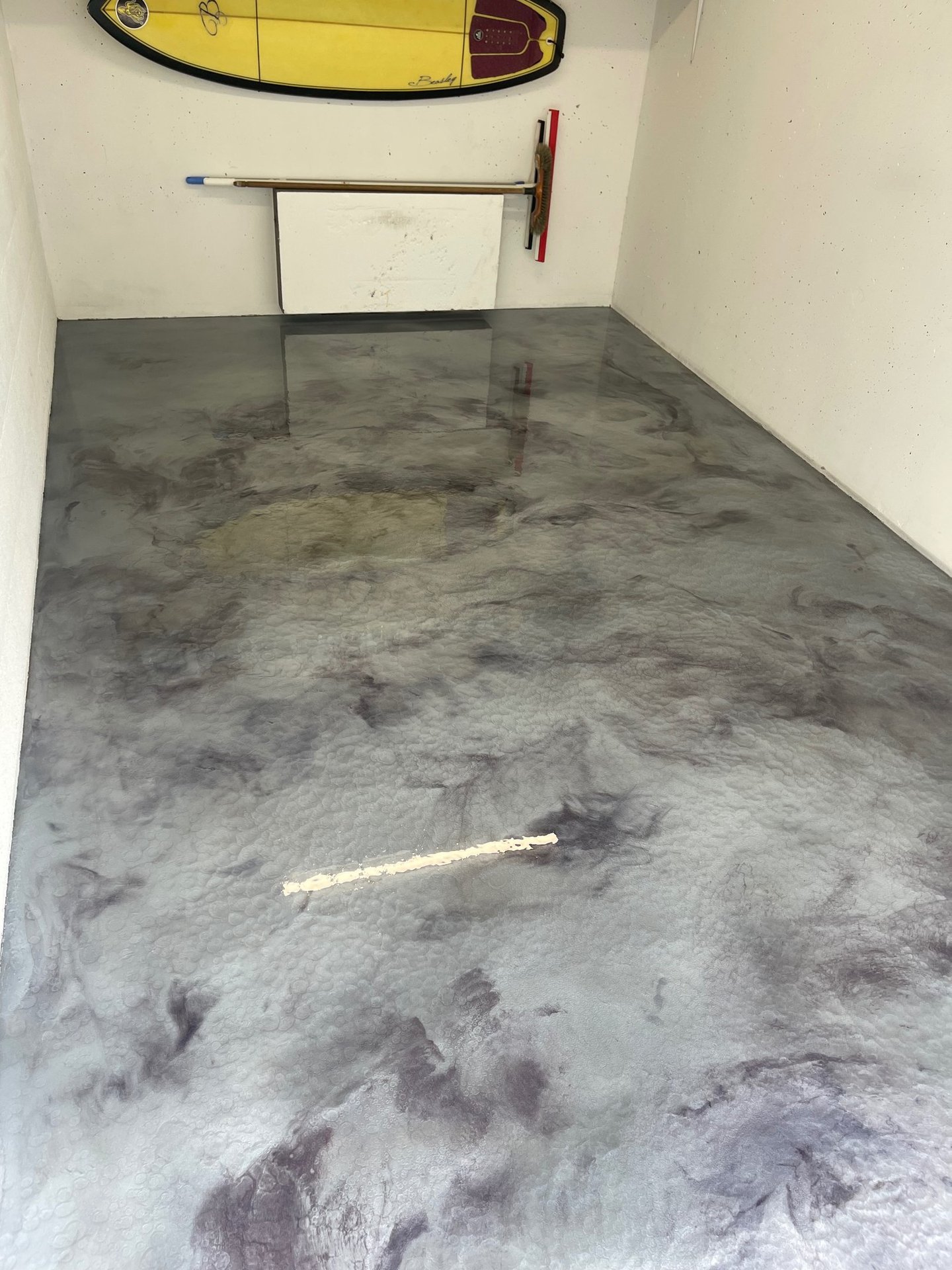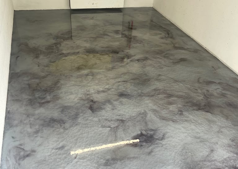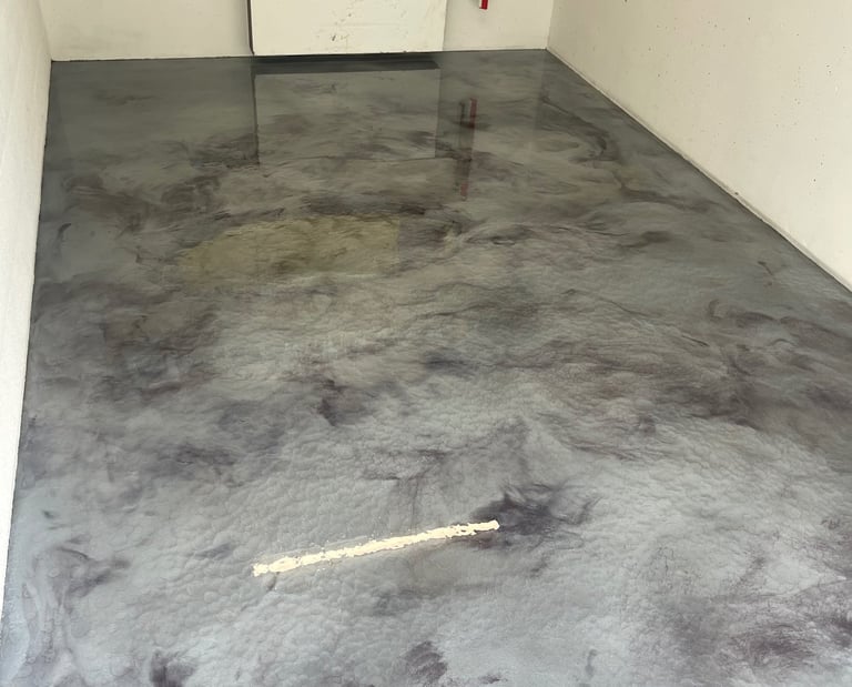 Sol d'un garage qui apporte une touche de modernité. Les nuances métalliques créent des effets de matière uniques