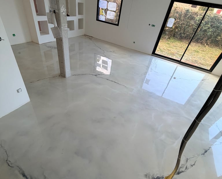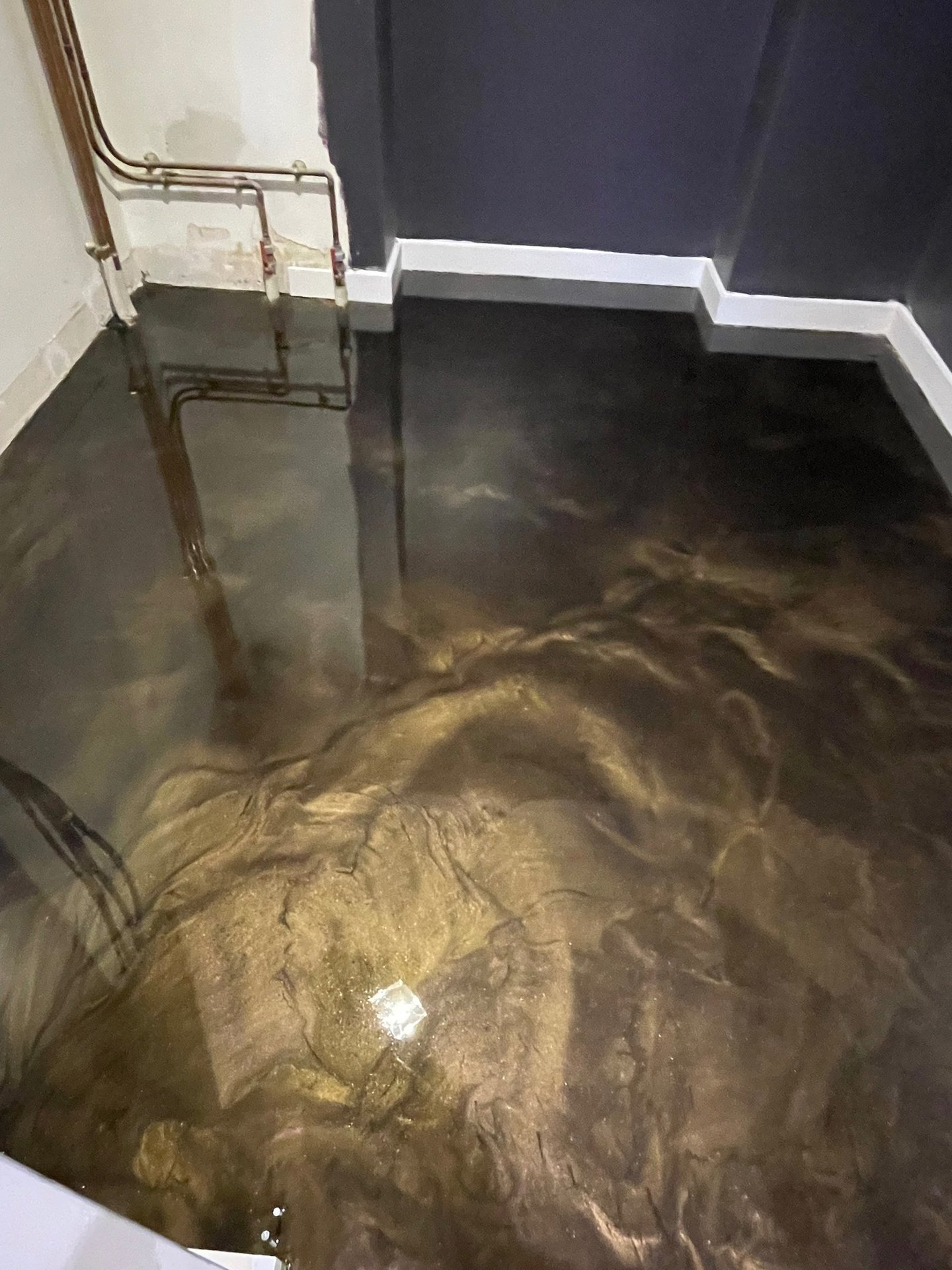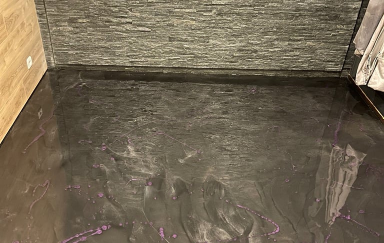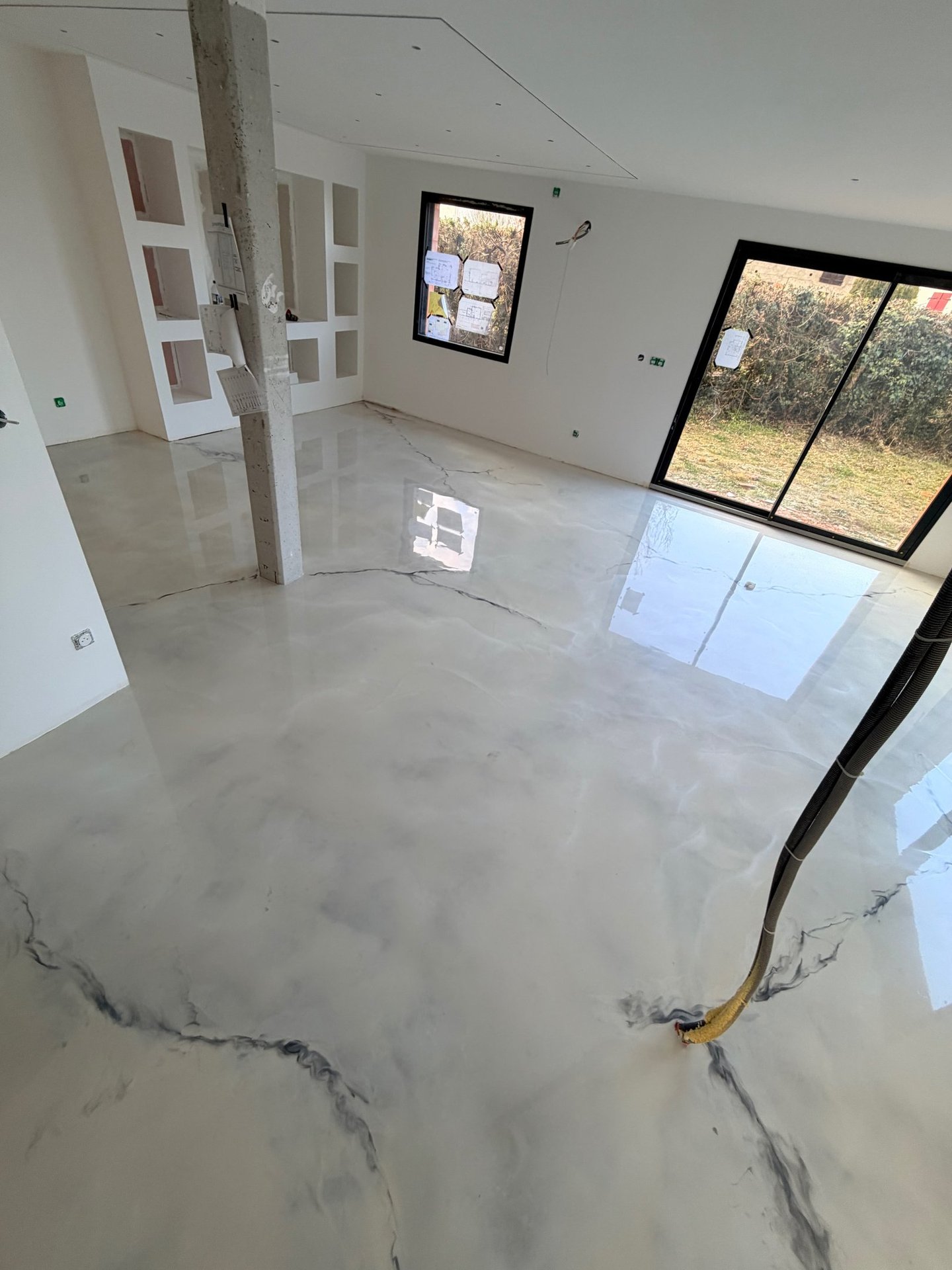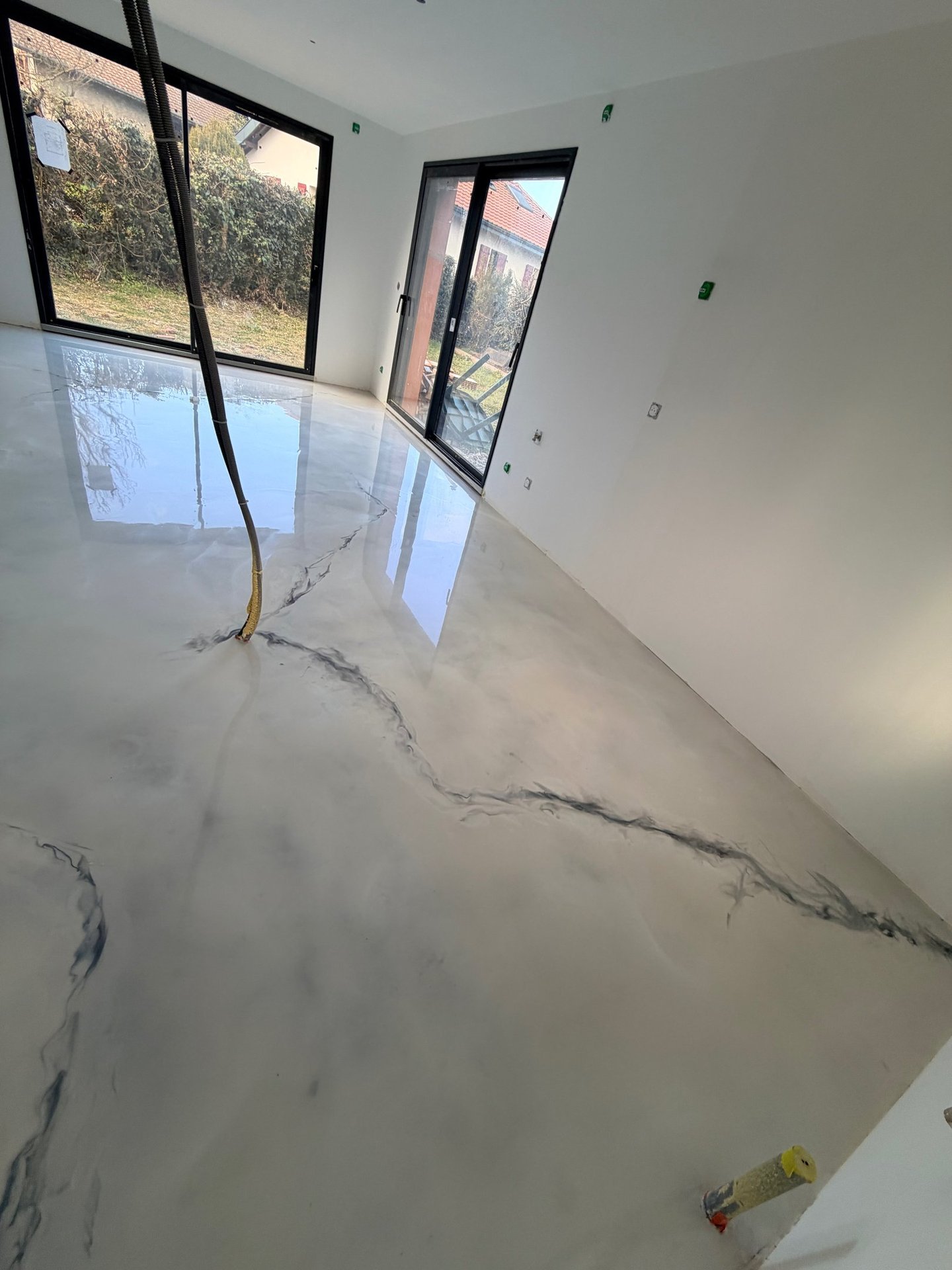 Réalisation d'un revêtement résine métallique noir et bronze, offrant rendu profond, lumineux et résolution haut de gamme