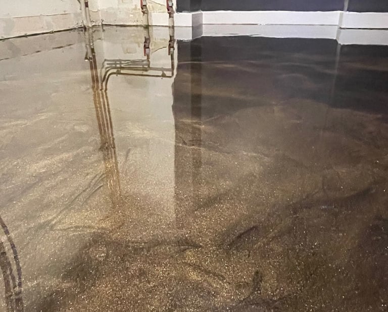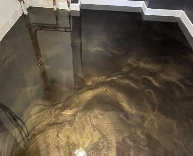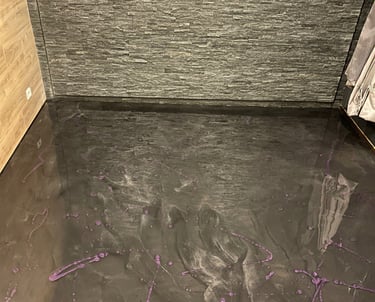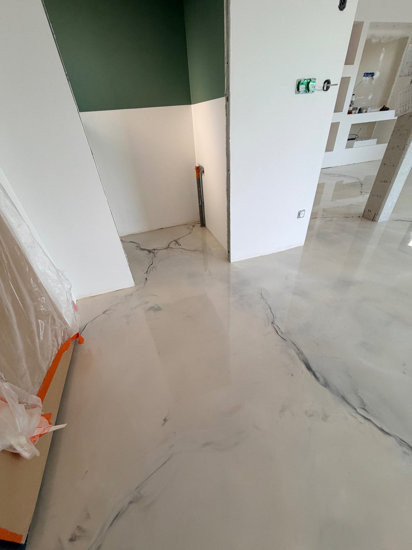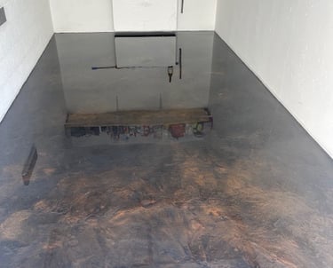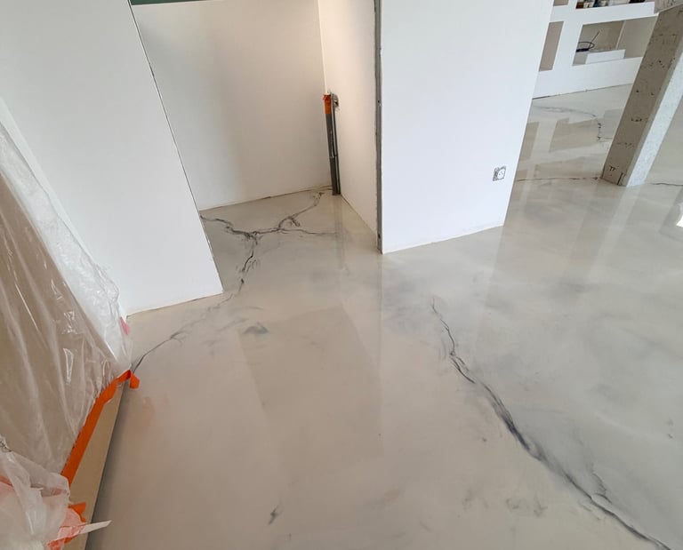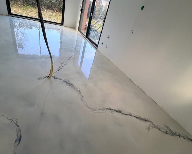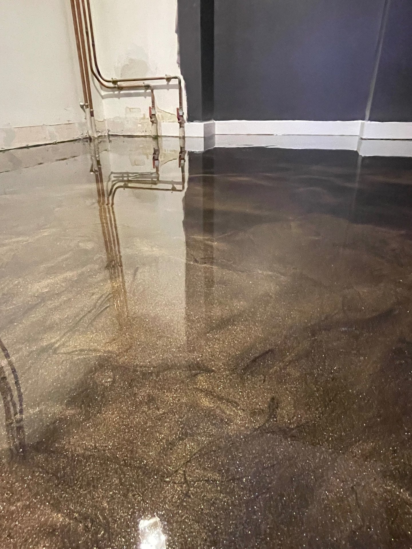 Réalisation d'un revêtement résine métallique noir et bronze, offrant rendu profond, lumineux et résolution haut de gamme