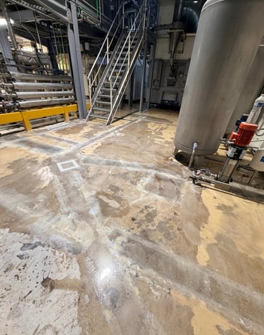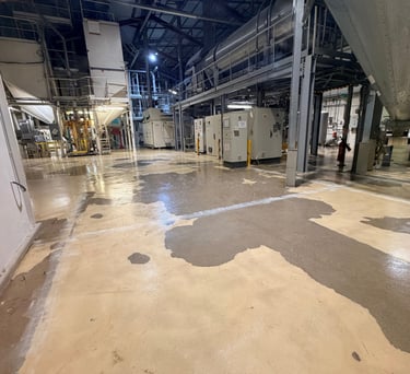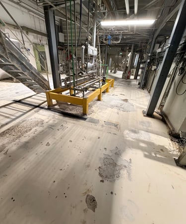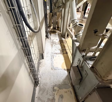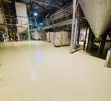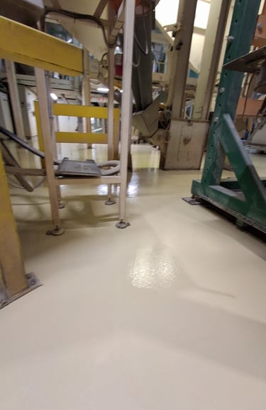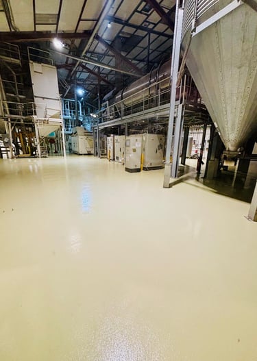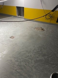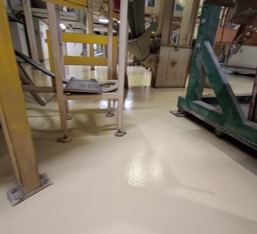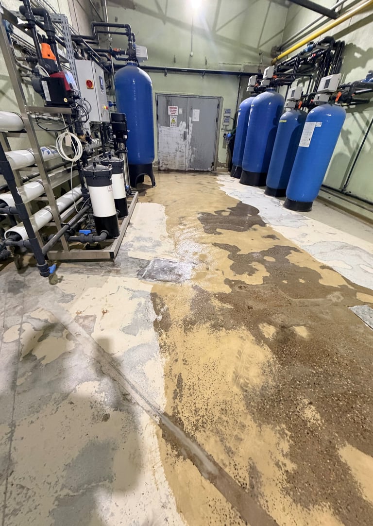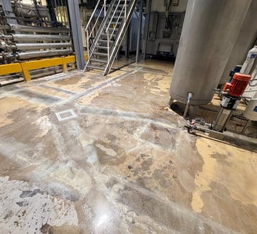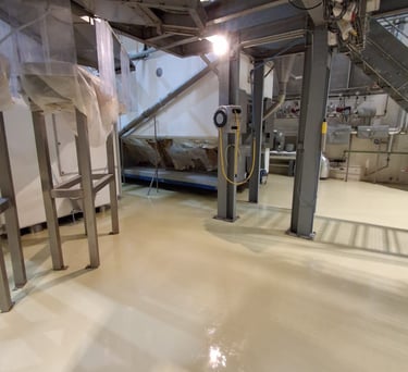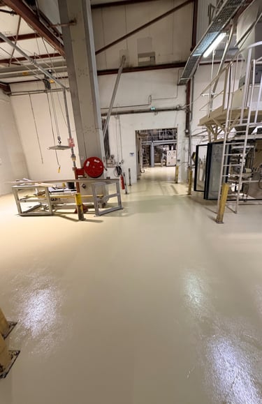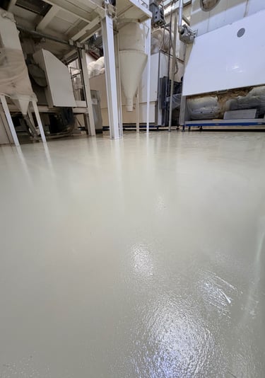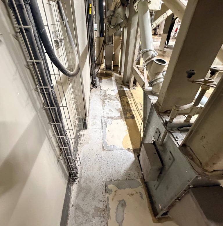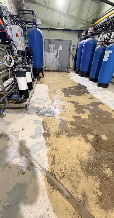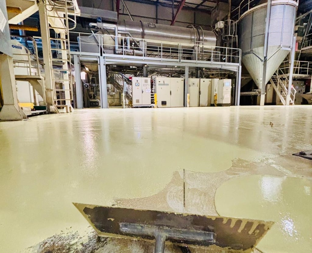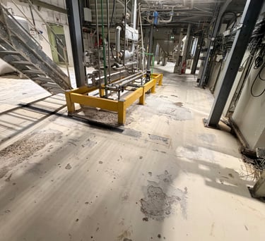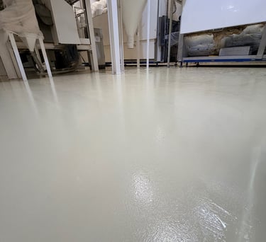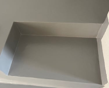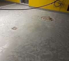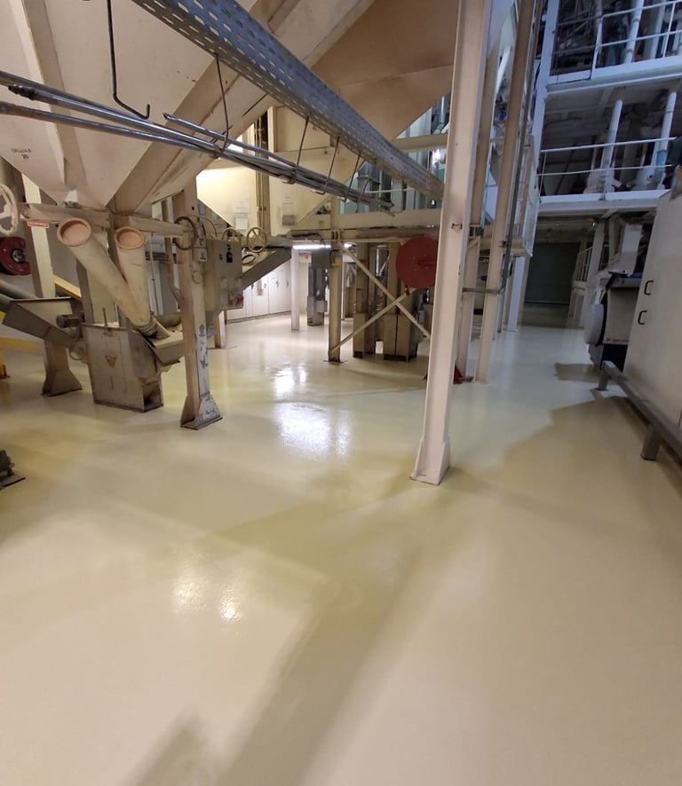 Rénovation d'un sol dans la commune de Romans, dans le 01, incluant un espace de stockage et un hammam. Après la préparation du sol, des fissures ont été constatées, nécessitant un traitement par une bande armée. Intégration de plinthes en mortier résine.